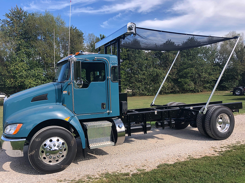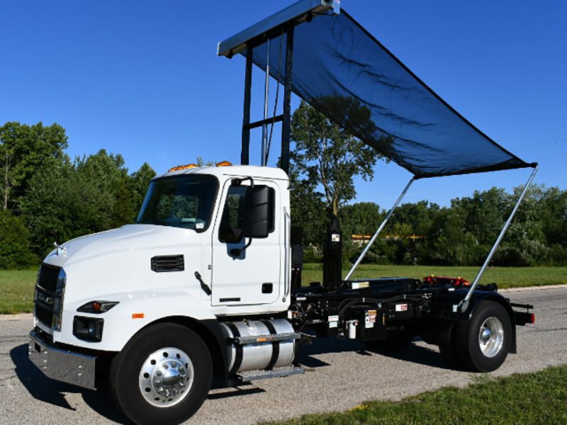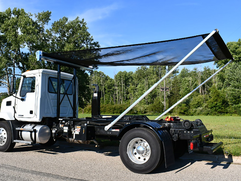 Learn MoreThe Hy-Tower™ semi-automatic roll-off tarp system covers containers from 15 to 40 cubic yards, with a gantry that raises either 12 or 15 feet above the truck frame and then tucks compactly behind the cab during transport.
